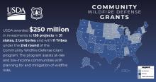 According to the USDA press release, the program is investing $1 billion over five years to assist at-risk communities through grants to local and Tribal communities, non-profit organizations, state forestry agencies, and Alaska Native Corporations, with planning for and mitigating wildfire risks on lands not managed by federal agencies.