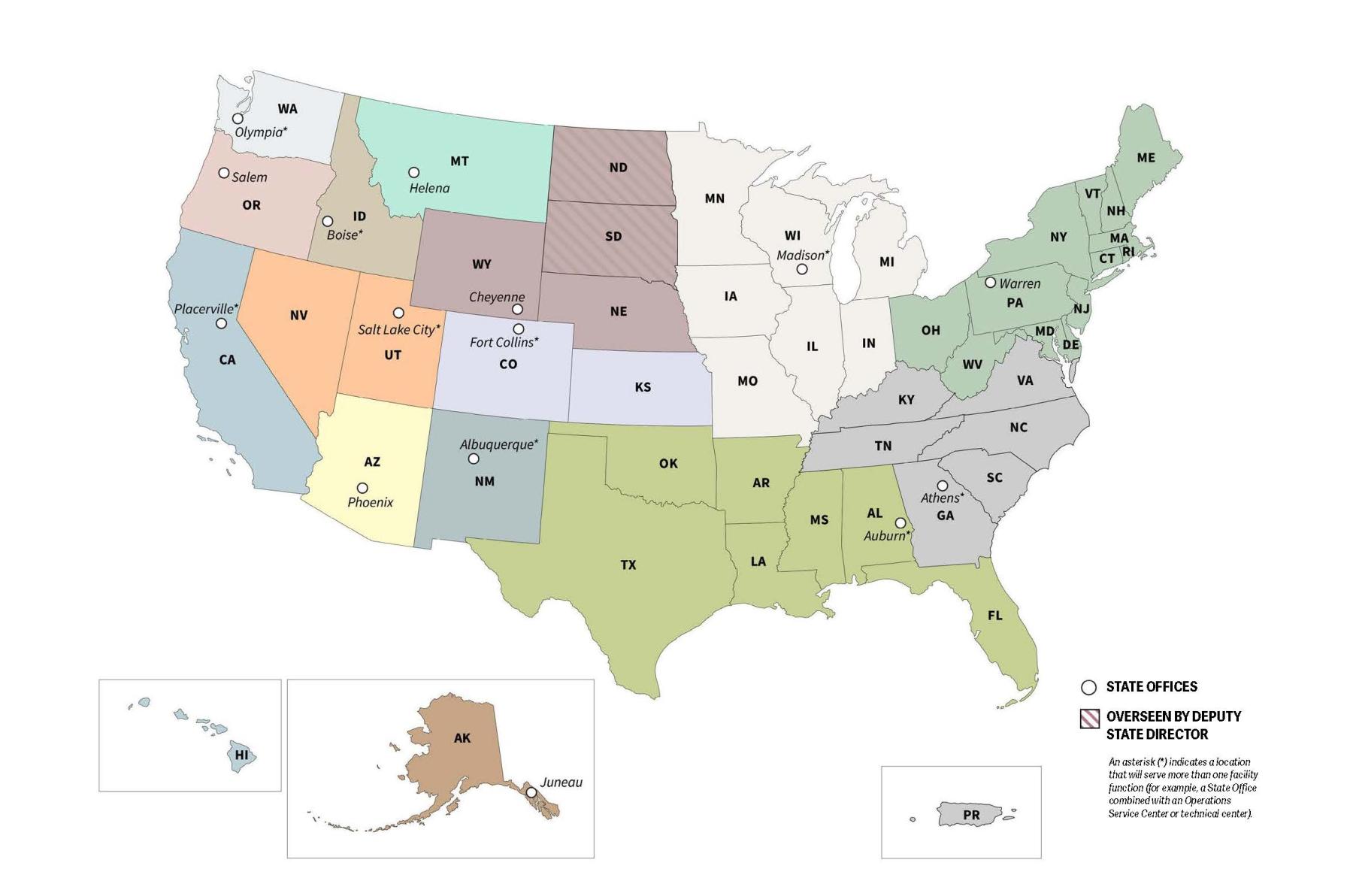 - Transitioning from a regional office structure to a state-based organizational model with 15 State Directors that will be supported by a small team responsible for functions such as legislative affairs, communications, and intergovernmental coordination.